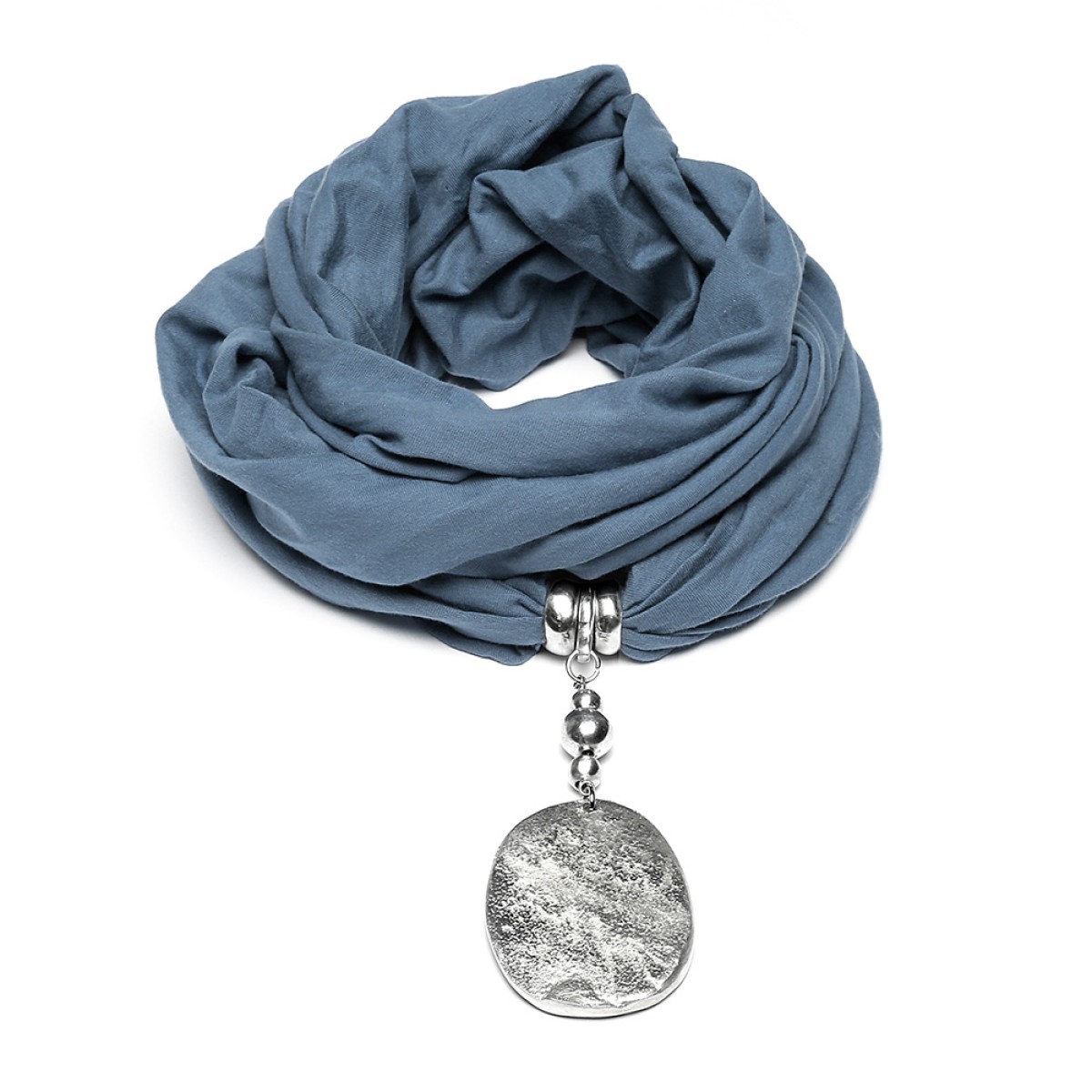 Etichete: Colier cu snur din jerse culoare jeans si pandant rotund din aluminiu reciclat 100%