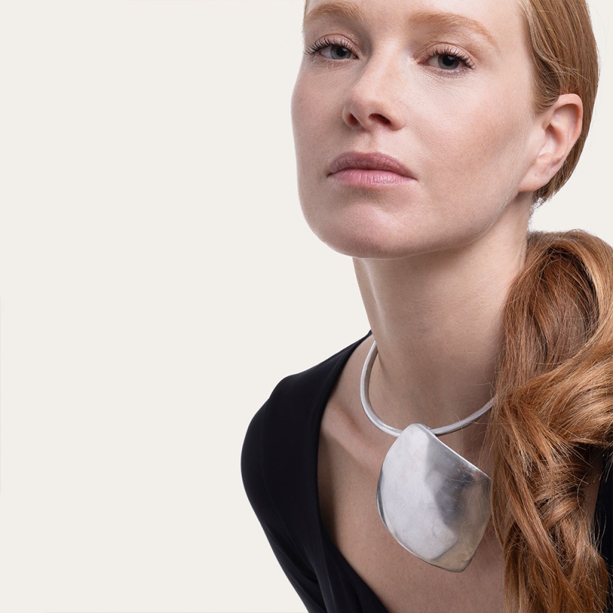 Colier rigid pandantiv forma romb realizat manual din aluminiu 100% reciclat